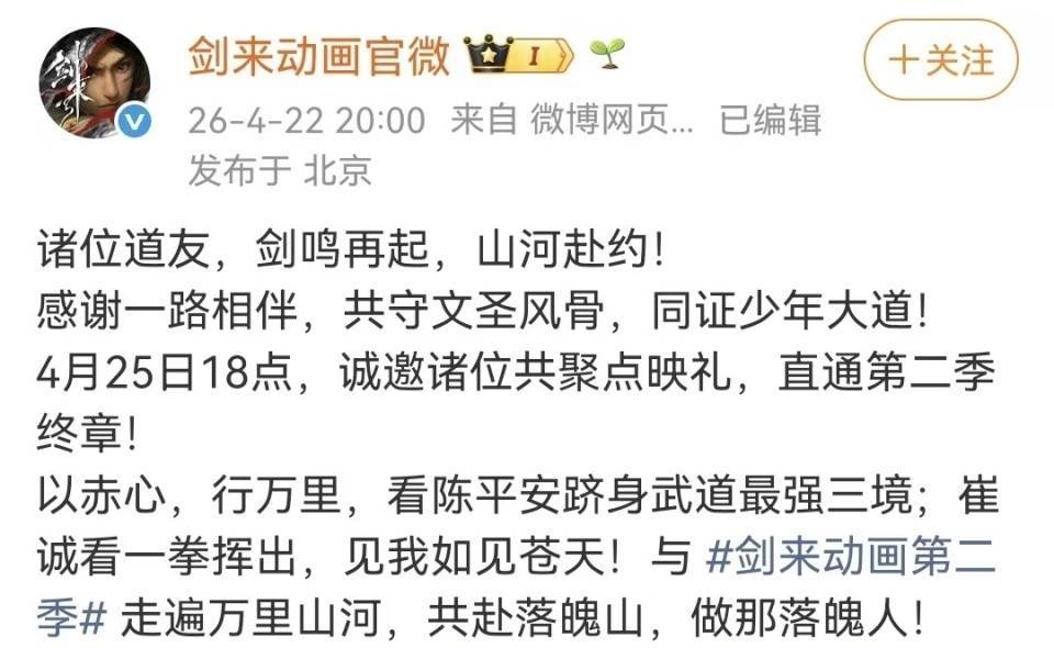 对于剑来这部动漫,很多人很喜欢的,也都在追这部动漫。这部动漫第一季可以说就很火,第二季可以说更火,看的人更多。如今剑来第二季第20集才出来,就来了一个让人意外的消息,那就是剑来第二季要开启所谓的超前点映。
